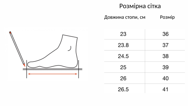 | Розмір жіночого взуття | 36 |